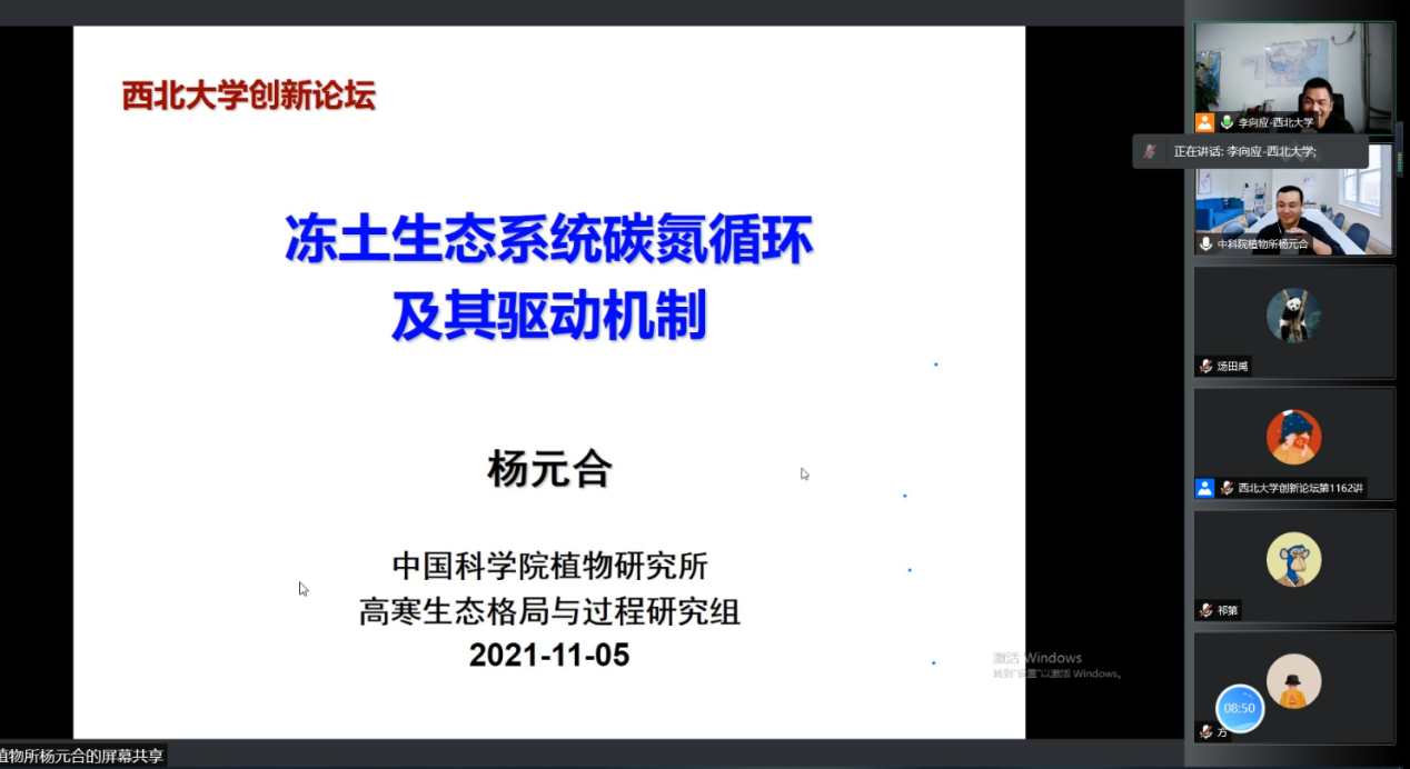 2021年11月5日上午,由公司科技处、科协主办,伟德国际始于英国1946、陕西省地表系统与环境承载力重点实验室承办的“伟德国际创新论坛”第一千零一百六十二讲暨“伟德国际120周年校庆年”系列活动在伟德国际始于英国1946三楼学术报告厅举行。中国科公司植物研究所研究员杨元合应邀为实验室人员作了题为《冻土生态系统碳氮循环及其驱动机制》的报告。公司相关研究人员和员工350余人积极参加了本次报告会,报告由李向应教授主持。