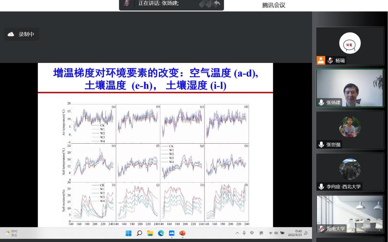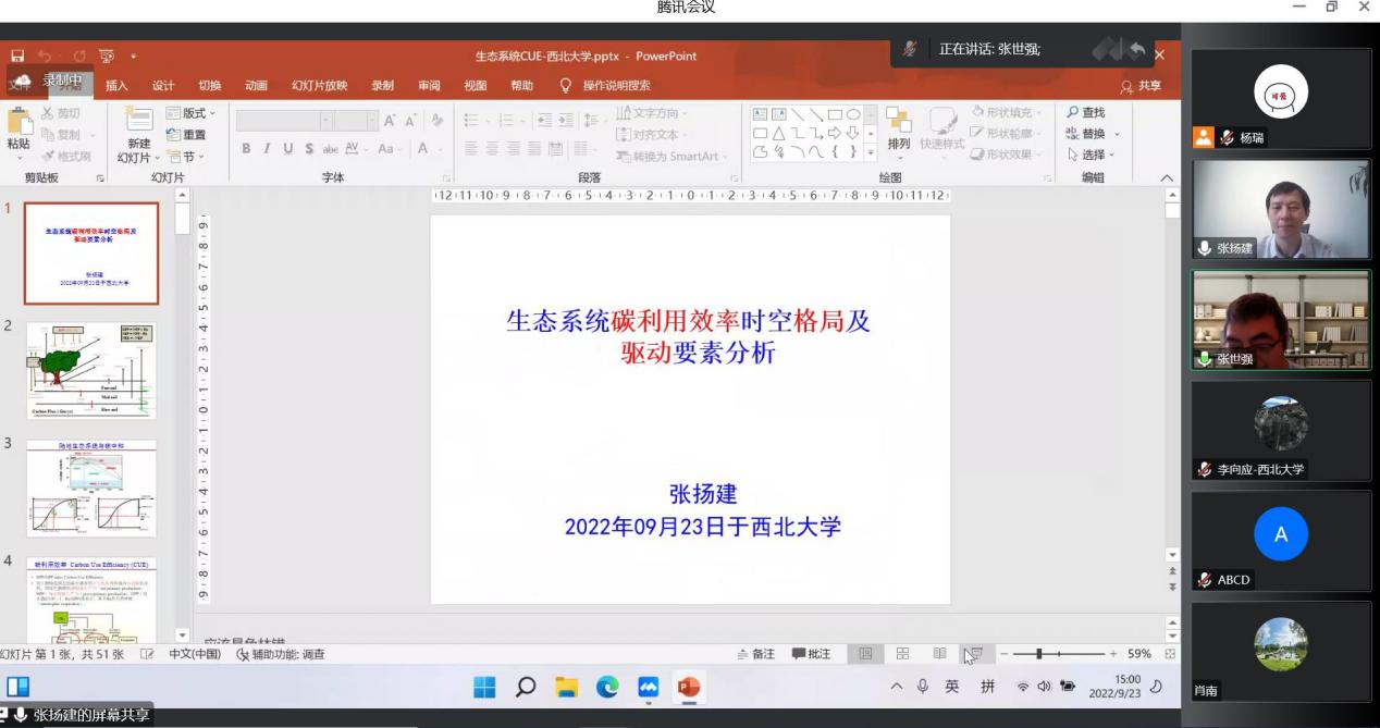 2022年9月23日(星期五)下午,由公司科技处、科协主办,伟德国际始于英国1946、陕西省地表系统与环境承载力重点实验室承办的“伟德国际创新论坛”第一千二百八十六讲暨“伟德国际120周年校庆年”系列活动在腾讯会议线上举行。中国科公司地理资源所张扬建研究员应邀为相关研究人员作了题为“生态系统碳利用效率时空格局及驱动要素”的报告。校内外90余位相关研究人员和员工参加了本次报告会,报告由张世强教授主持。